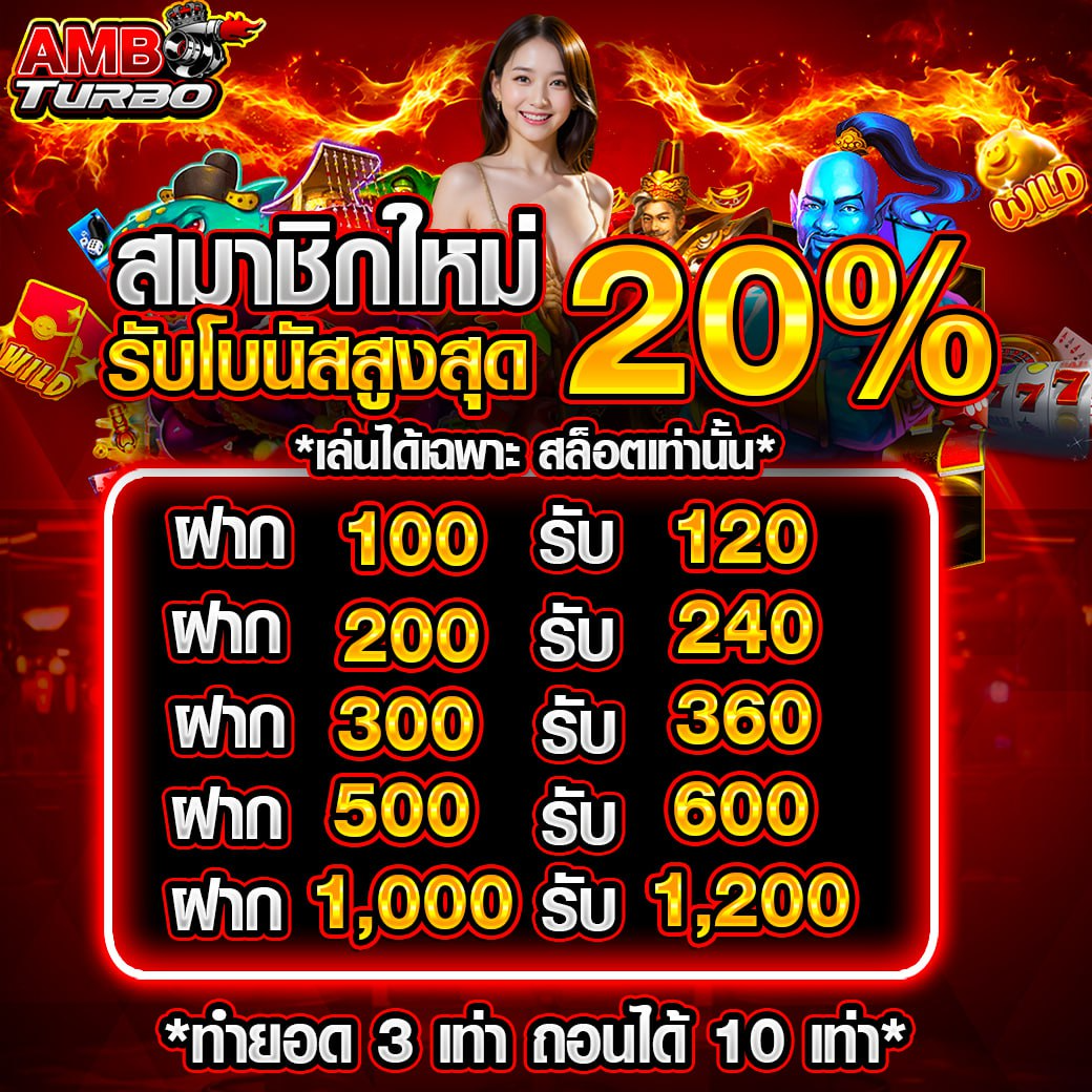 พิเศษสำหรับสมาชิกใหม่ AMBTURBO มีโบนัสต้อนรับสูงสุด 100% สำหรับการฝากครั้งแรก เพียงทำตามเงื่อนไขที่กำหนด นอกจากนี้ยังมีโปรโมชั่นพิเศษอื่น ๆ อีกมากมายที่รอให้คุณได้ร่วมสนุก เมื่อฝากเงินเรียบร้อยแล้ว คุณสามารถเริ่มเดิมพันในเกมที่ชื่นชอบได้ทันที ไม่ว่าจะเป็นสล็อต คาสิโน กีฬา หรือเกมอื่น ๆ ที่มีให้เลือกมากมาย